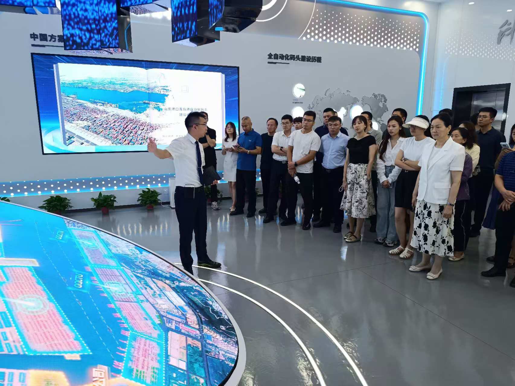 “發(fā)展新質(zhì)生產(chǎn)力,建設(shè)世界一流海洋港口”。第四站,聯(lián)絡(luò)員一行來到全球領(lǐng)先、亞洲首個(gè)全自動(dòng)化集裝箱碼頭和首個(gè)“氫+5G”智慧綠色碼頭-山東省港口集團(tuán)青島港全自動(dòng)化集裝箱碼頭,這也是全國首個(gè)全國產(chǎn)全自主自動(dòng)化碼頭。該碼頭實(shí)現(xiàn)了當(dāng)年投產(chǎn),當(dāng)年盈利,作業(yè)效率較傳統(tǒng)碼頭提升30%,節(jié)省人力80%,10次打破自己保持的自動(dòng)化碼頭裝卸效率世界紀(jì)錄。聯(lián)絡(luò)員們了解了青島新前灣集裝箱碼頭有限責(zé)任公司關(guān)于智慧港口建設(shè)實(shí)踐和綠色港口建設(shè)情況。山東省港口以科技創(chuàng)新賦能產(chǎn)業(yè)創(chuàng)新、以改革探尋轉(zhuǎn)型發(fā)展最優(yōu)解的高質(zhì)量發(fā)展新路徑給聯(lián)絡(luò)員們帶來深刻啟示。